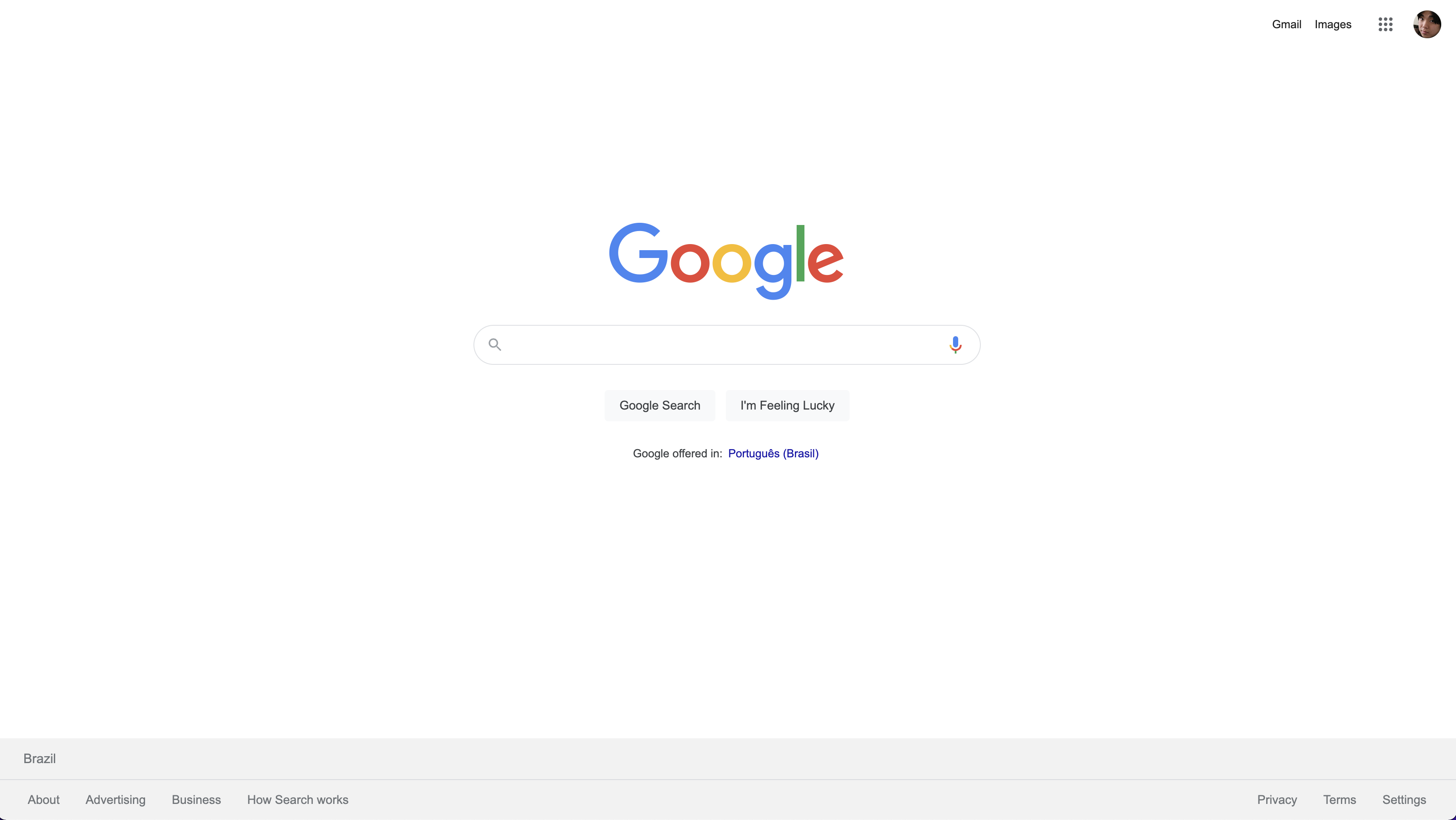 Não tenha medo de adicionar espaço vazio entre os grupos. No início provavelmente vamos pecar pela falta de espaço, então procure adicionar um pouco mais de espaço do que gostaria. Com o tempo esse processo se torna mais natural. Um bom exemplo de uso do espaço vazio é a página inicial do Google: