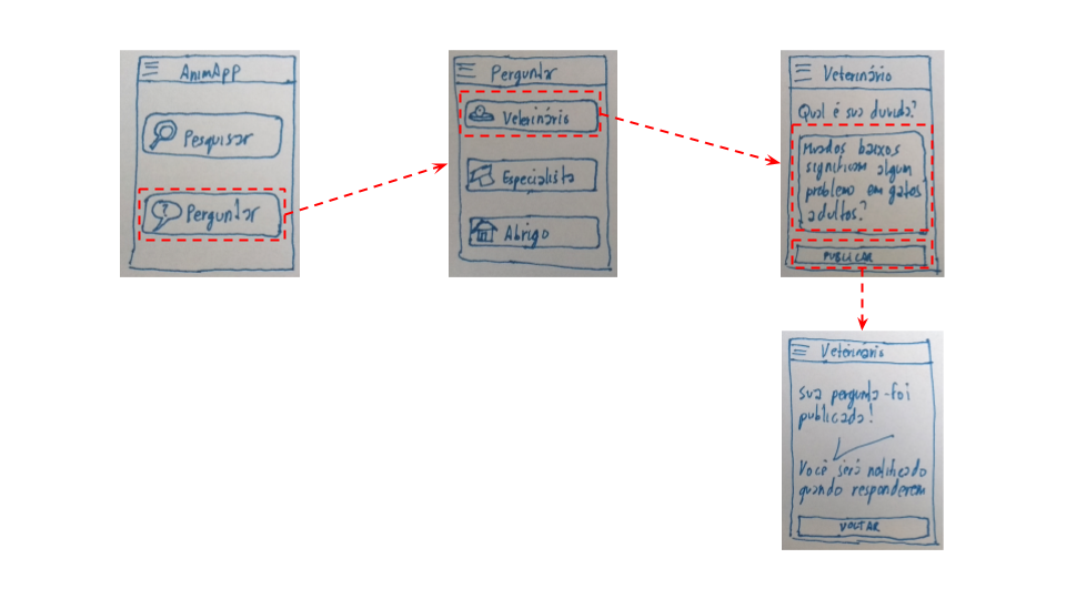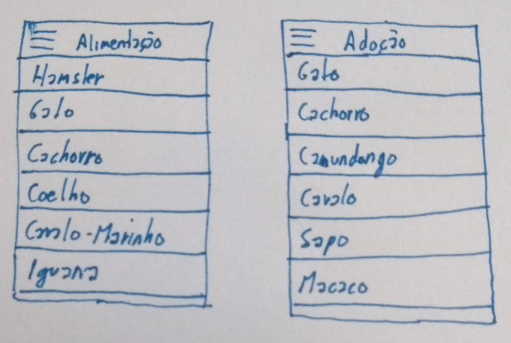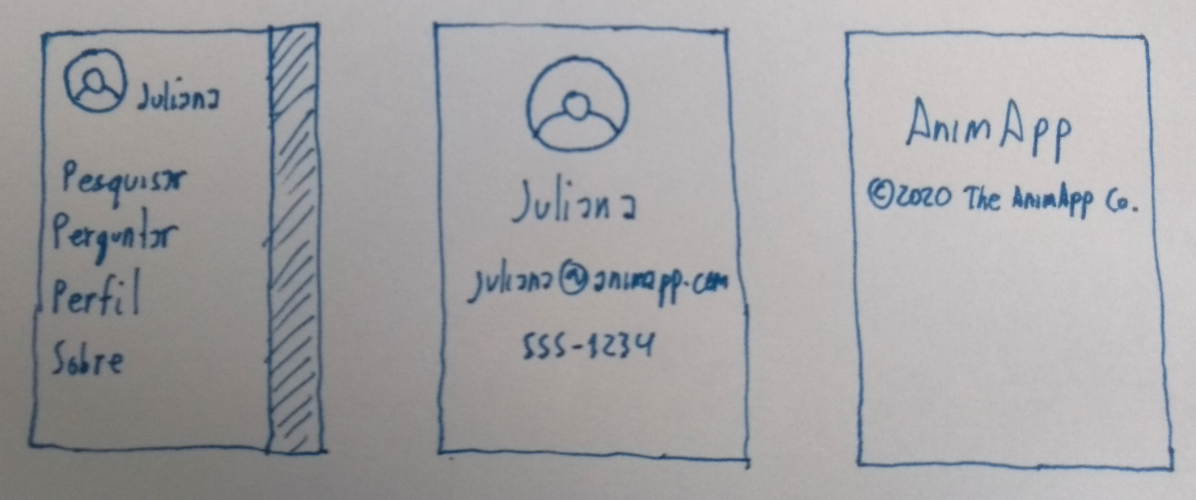 Cuidado para não esquecer telas! O "botão sanduíche" no canto superior esquerdo dos sketches dos fluxos sugere a existência de um menu. Uma entrega com conceito A deve incluir sketches desse menu.