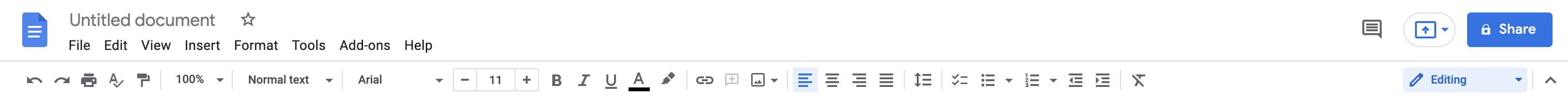 - Todos os ícones em comum estão na mesma ordem: desfazer/refazer, imprimir, zoom, fonte, tamanho da fonte, decorações de fonte, etc.