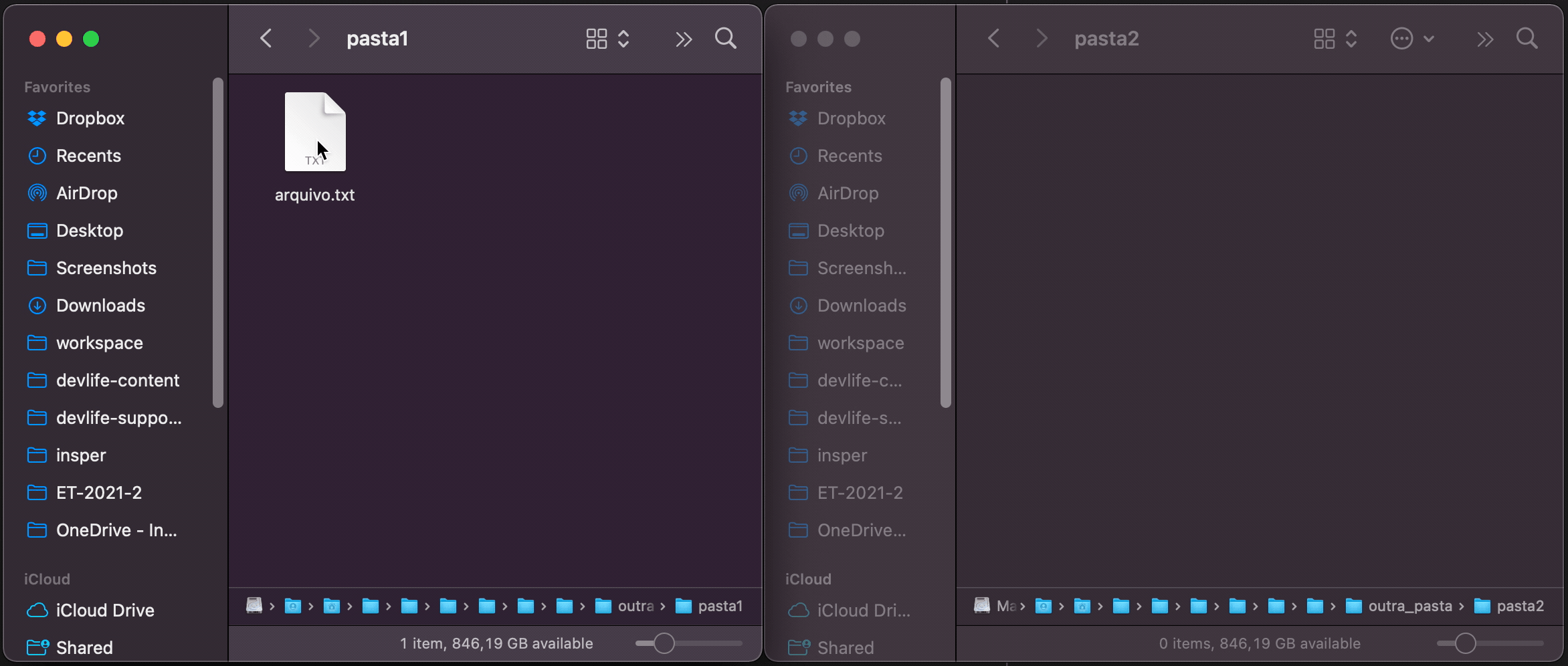 Atualmente nós podemos simplesmente arrastar um arquivo de uma pasta para a outra:
