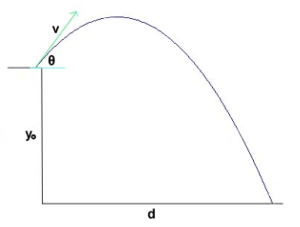\[d = \frac{v^2}{2g}\left(1 + \sqrt{1 + \frac{2gy_0}{v^2(\sin(\theta))^2}}\right)\sin(2\theta)\]