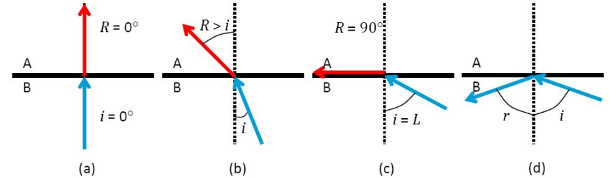 Um ângulo crítico de refração é definido quando um feixe de luz que atravessa de um meio de índice de refração maior para um menor é refratado paralelo a superfície. Ângulos de incidência maiores que este, farão a luz refletir internamente de forma total, e não mais refratar.